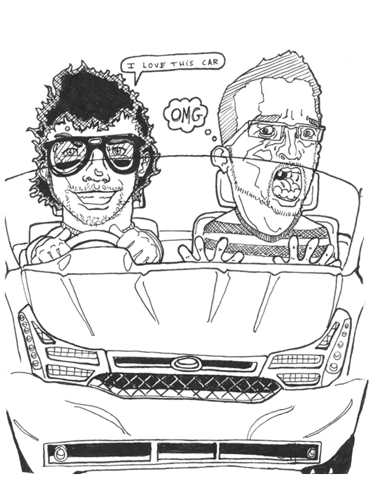 This is an awesome drawing my roommate Rodrigo made for me representing me driving our new rental in downtown Chicago.