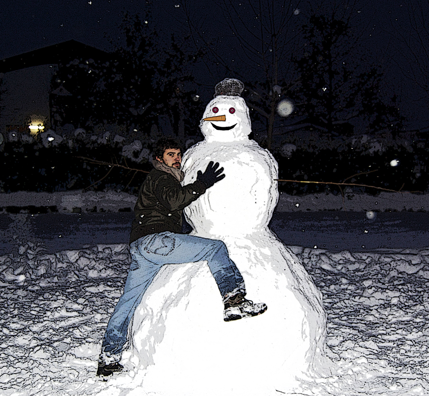 Yesterday I got very excited cause of all the snow getting more and more on the side of streets. All that endless snowing, made me want to build a snowman. I wanted to build something kids would see from far away, screaming something like “Oh my God, did you see that mom?! THAT-IS-AWESOME!!!” Also, that was a new challenge for me. I remember that when I used to be a kid, building regular-sized snowmen wasn’t easy at all: you get some snow you push it against the snowman’s head in order to complete the head and the whole thing falls off. What the hell, how frustrating.