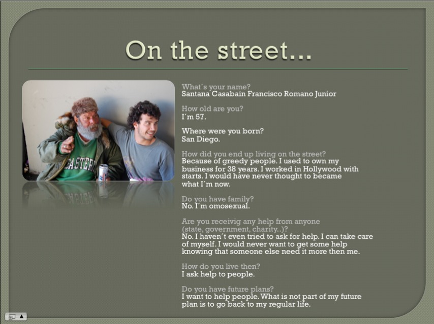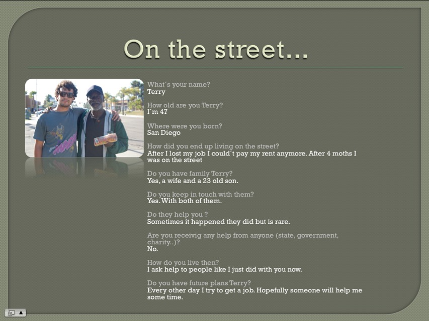 Novita’ novita’ novita’… Oggi sono stato cacciato via da un’altra casa. Questa volta non dalla casa dei Graves ma dalla casa di Tabata. No, la persona che mi ha cacciato non e’ stata lei ma una delle 4 ragazze con cui vive. Ho passato un paio di giorni in casa loro giusto dopo la fine del semestre, considerato il fatto che ultimamente a causa degli esami di fine semestre non avevo avuto molto tempo da poter spendere con Miss.T. Dopo questi due giorni sono stato accusato d’essere frutto di disagio. La cosa che mi da’ da fare e che son sempre stato super attento riguardo ogni mia mossa in loro presenza, mi e’ sembrato di aver contribuito ad aiutare in casa, ed in fine non mi sembra di aver approfittato della loro ospitalita’. Va beh. Ho porto le mie piu’ sincere scuse e me ne sono andato. Il mondo VS Miss.T. and Francesco. Ma noi non molliano.