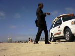 Come chiaramente dice il titolo “An Indian On the Beach”, prima o poi dovevo citarlo l’indiano sulla spiaggia. Tre giorni fa mi e’ capitato di ritrovarmi in Ocean Beach e come potete notare dalle foto, un Indiano in completo che girovagava sulla spiaggia in un modo piuttosto insolito, e’ stato fermato dalla polizia con l’accusa di indossare vestiti fuori luogo. Dopo essere stato controllato da cima a fondo la polizia ha dovuto rilasciarlo non avendo motivi per trattenerlo.