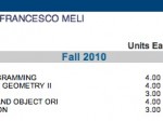 Proprio oggi mi sono ricordato di non aver postato i risultati del mio terzo semestre (e se va tutto bene penultimo) al City College. Se non fosse’ stato per quella macchiolina nera, sarei stato piu’ soddisfatto, ma hey, chi si accontenta gode, no?